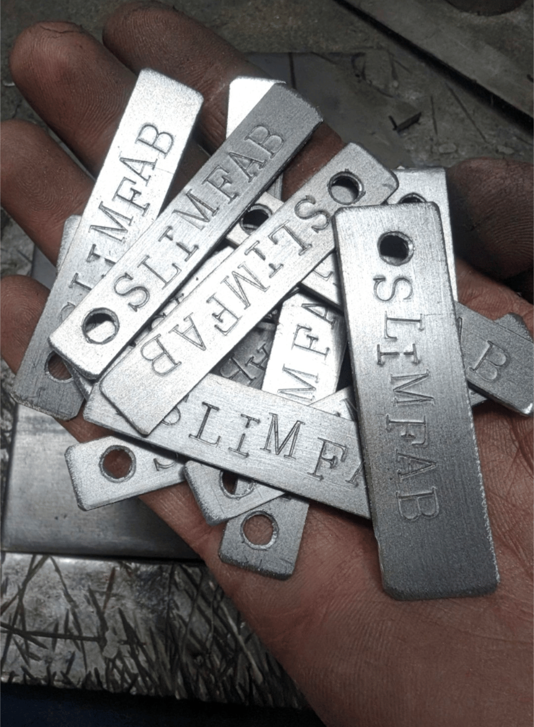 These key tags are made with 16 gauge coal finish steel and hand stamped. These are not mass-produced. They're stamped one at a time, therefore making not one of them identical. And they include a key ring.